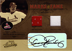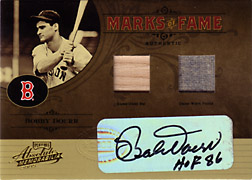 | 2005 Playoff Absolute Memorabilia Mike Schmidt Marks of Fame Auto/Bat/Jersey/Cap Serial Numbered #08/10 Price: $160.00 | 2005 Playoff Absolute Memorabilia Dennis Eckersley Marks of Fame Auto/Dual Jerseys Serial Numbered #20/25 Price: $40.00 | 2005 Playoff Absolute Memorabilia Bobby Doerr Marks of Fame Auto/Bat/Jersey Serial Numbered #04/50 Price: $25.00 |